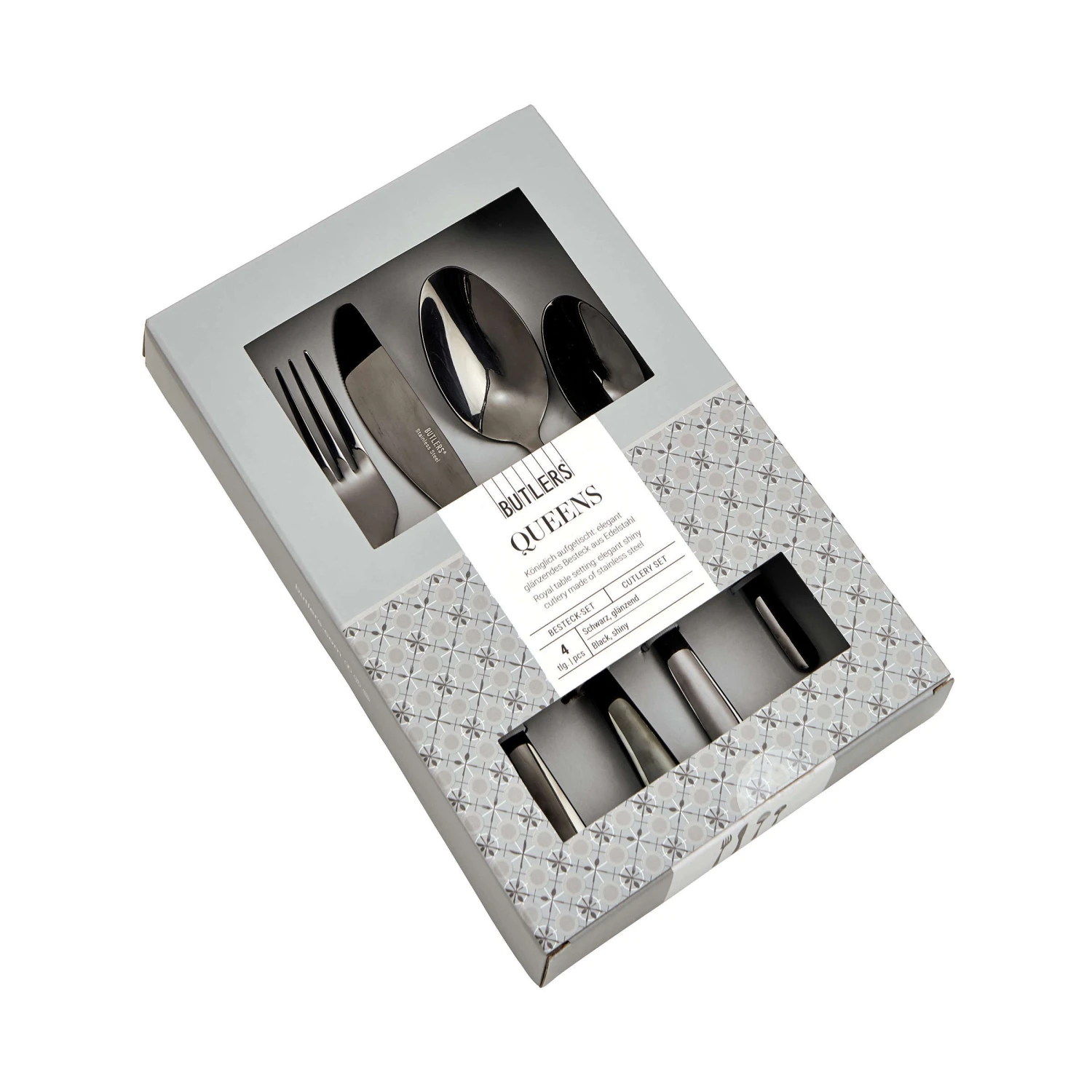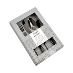 Jetzt wird’s luxuriös, denn das 4-teilige Queens Besteckset bringt majestätischen Charme auf Ihren Tisch. Ob romantisch, verspielt oder luxuriös – das hochwertige Besteckset aus Edelstahl beinhaltet alles was Sie für eine geschmackvoll eingedeckte Tafel brauchen und rundet jeden Stil königlich ab. Sowohl im Alltag als auch zu ganz besonderen Anlässen überzeugt das glänzende Essbesteck durch das schlichte Design und die eleganten Formen.