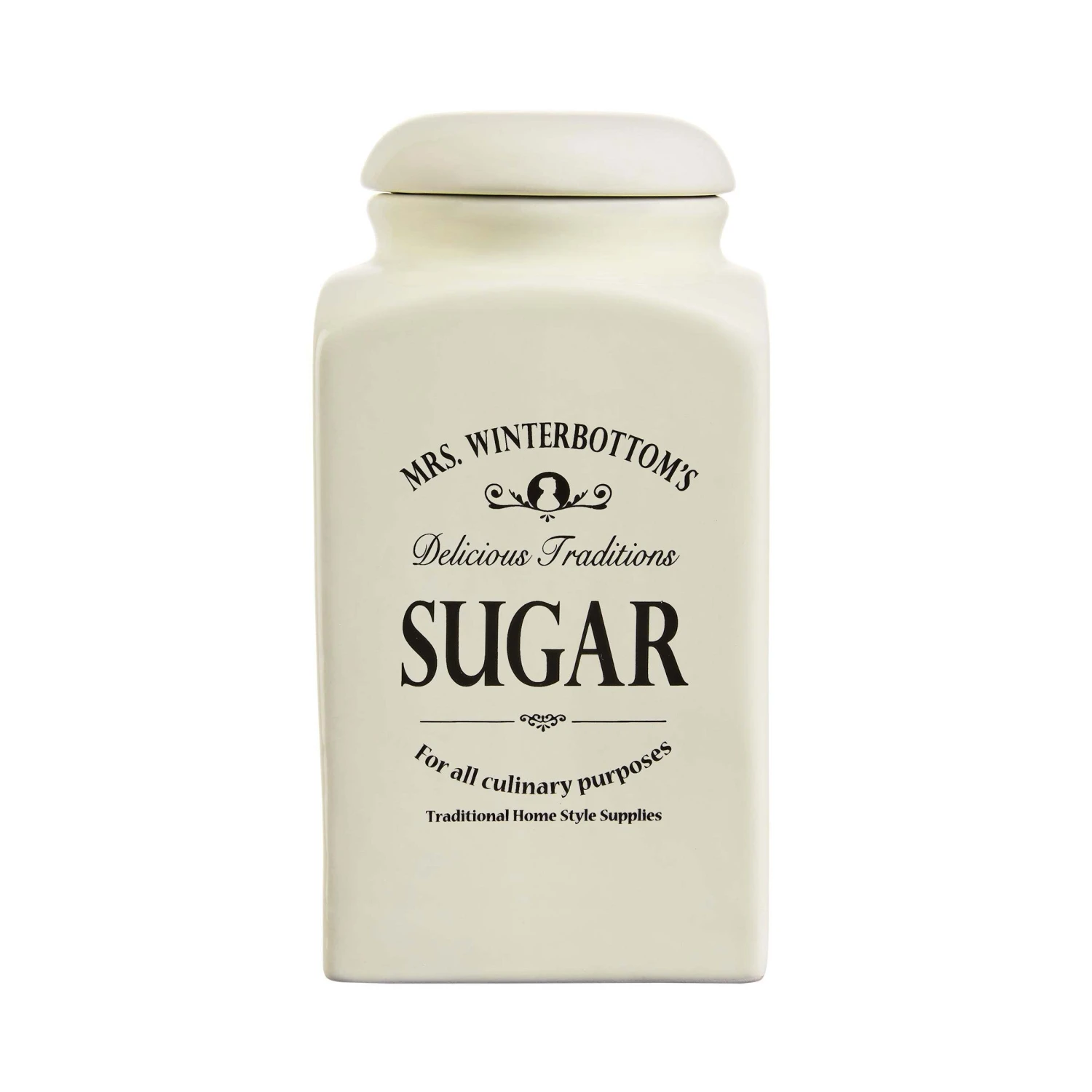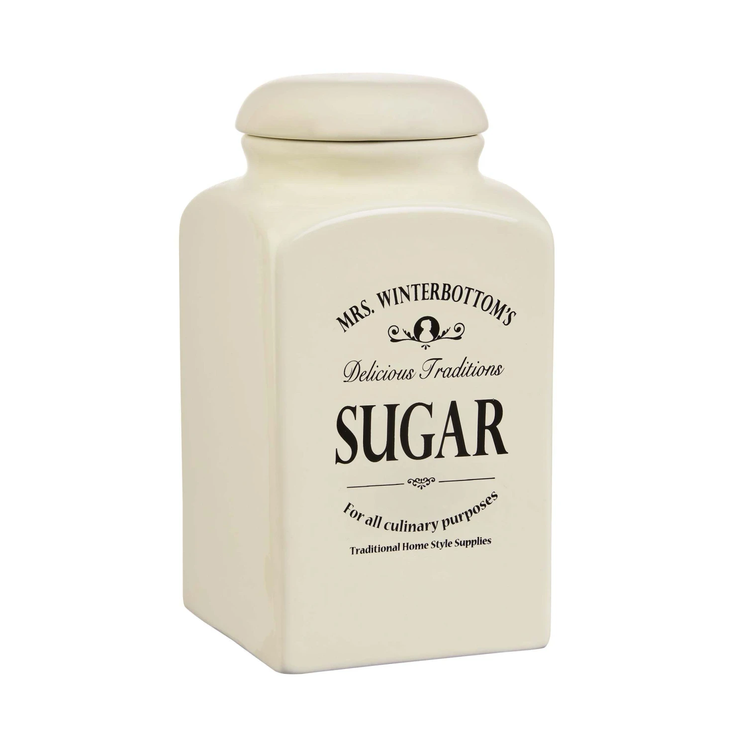 Die Mrs. Winterbottom’s Dose mit Deckel im englischen Stil bewahrt Mehl und Zucker definitiv trocken und ordentlich auf. Mit diesem Schmuckstück als Deko setzen Sie in der Küche und auf dem gedeckten Tisch helle Akzente und der kleine Vorratsbehälter bringt Ordnung mit System in Ihre Küche. Der Keramiktopf bietet Schutz vor Dreck und Feuchtigkeit und passt zudem mit seiner Retro-Form perfekt zu modernen Küchen oder Landhausstil.