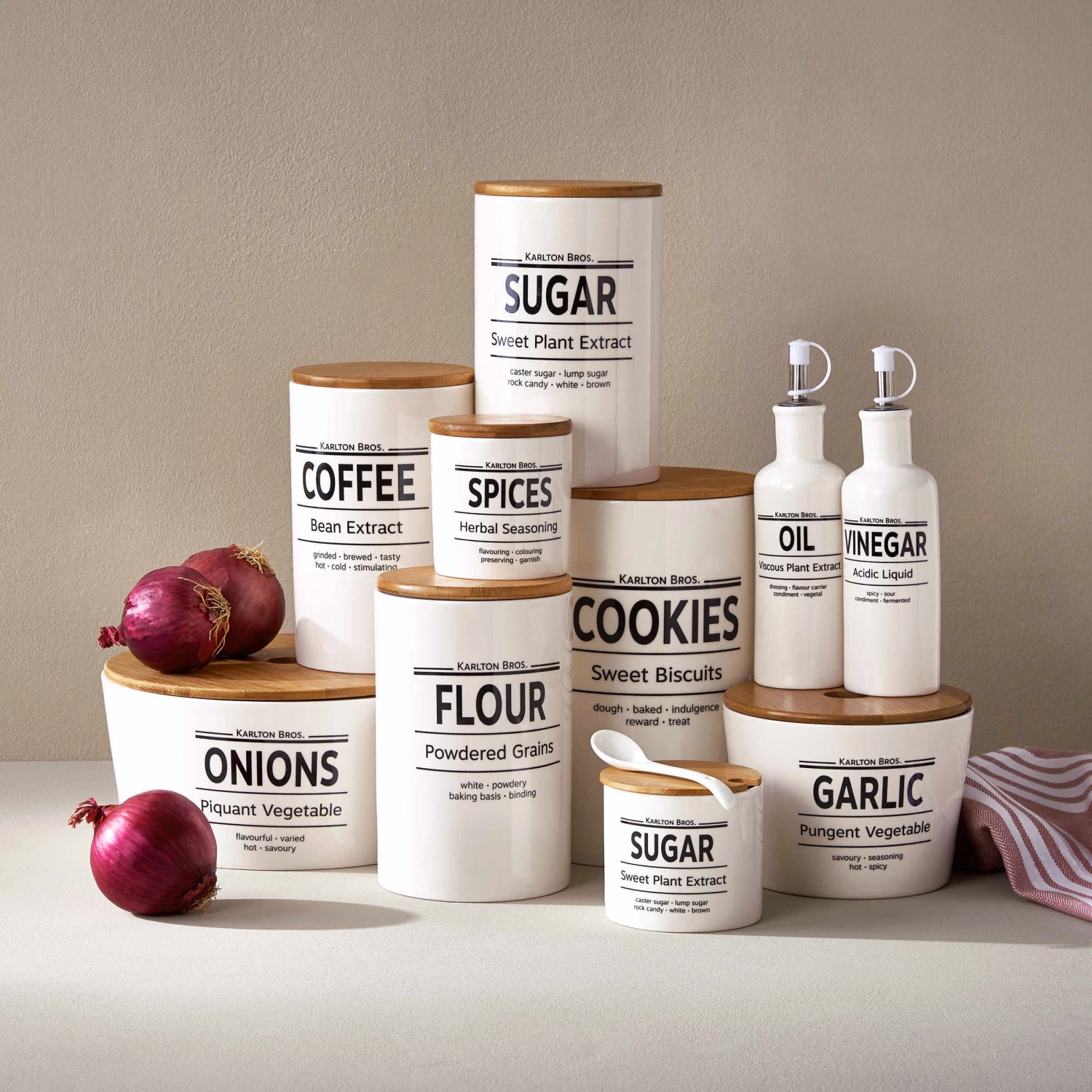 Die Karlton Bros. Vorratsdose Spices im skandinavischen Landhausstil ist Ihr treuer Begleiter beim Kochen und Abschmecken. Die Vorratsdose mit Bambusdeckel und Silikonrand ermöglicht eine trockene Lagerung Ihrer Gewürze und Kräuter, sodass die feinen Aromen besonders lange erhalten bleiben. Das Aufbewahrungsdöschen mit edlen Gewürzen immer griffbereit, können Sie Ihre Gerichte abschmecken, verfeinern und garnieren und anschließend Ihre Gewürzen stilvoll in der Küche oder im Vorratsschrank lagern. Passend zur Gewürzdose aus Porzellan bietet die Karlton Bros. Serie auch viele weiter Aufbewahrungsartikel im reinen Stil Skandinaviens.